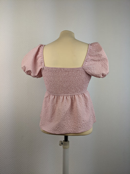 Pink Textured Puff Sleeve Top