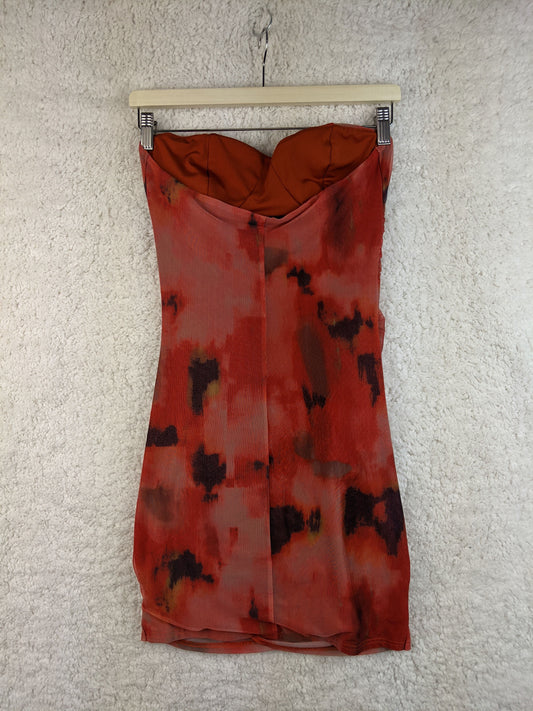 Red strapless bodycon dress