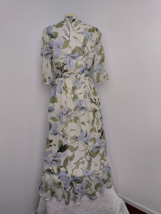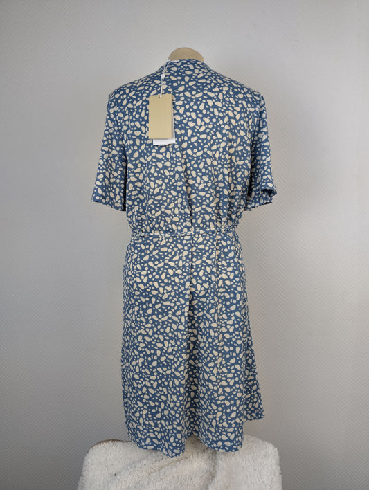 Vila blue patterned dress with belt - Medium