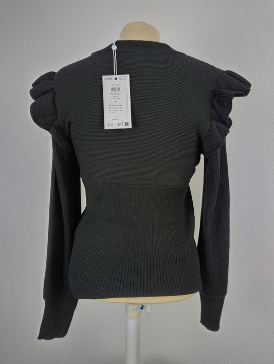 Vila black ribbed knit top with ruffle shoulders
